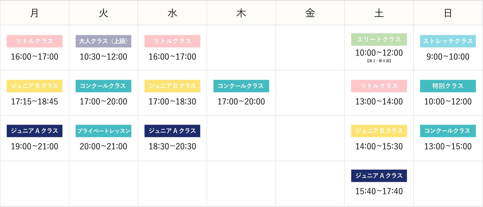 ※この他、バー・アスティエ/プライベートレッスン/大人のバレエ/コンテンポラリーダンスもご希望があればレッスンできます。(本部教室でもご希望があればレッスンできます)